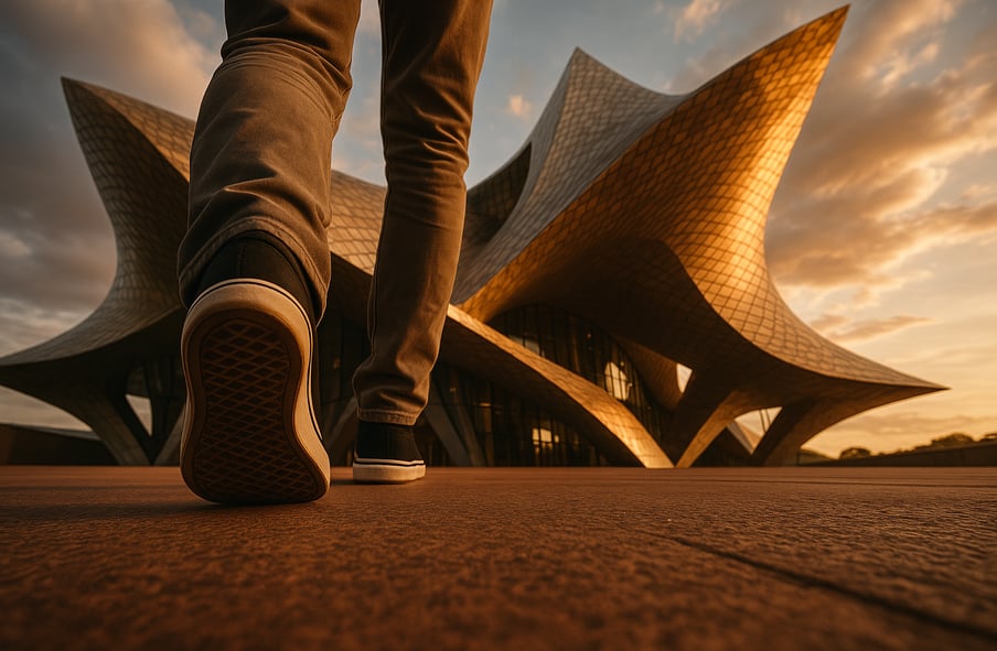 El edificio es, finalmente, espejo y profecía, promesa de lo que aún puedo llegar a ser. Y yo, humilde caminante hacia su misterio, solo puedo entregarme a su llamada, rendirme a la belleza que promete iluminar, quizá, las sombras interiores que llevo conmigo.